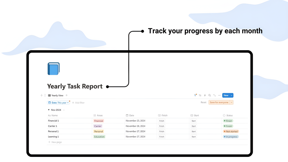 • Monitor progress with the Yearly Task Report and adjust as needed.